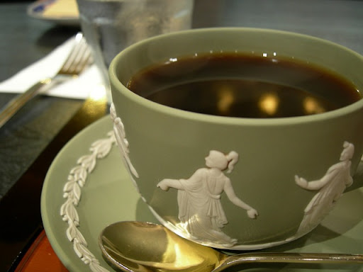 ここのお店は、自分で好きなカップを選べます。今日は、ウェッジウッドのコーヒーカップと...