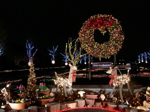 昭和記念公園の立川口から広場まで、ずーっとイルミネーションが続きます。まずは、リースのイルミネーションがお出迎えをしてくれます。